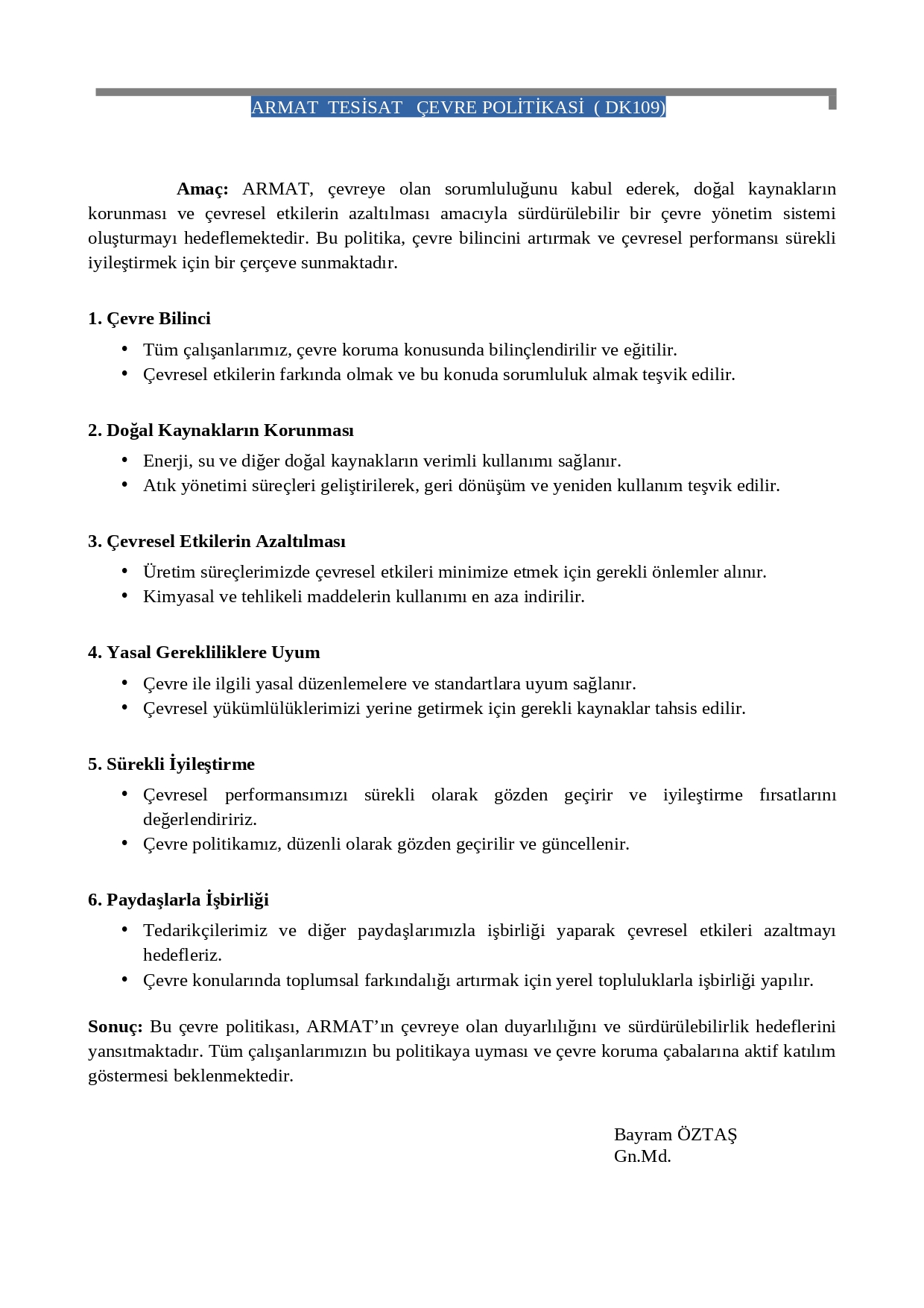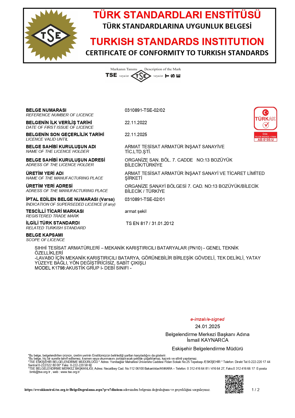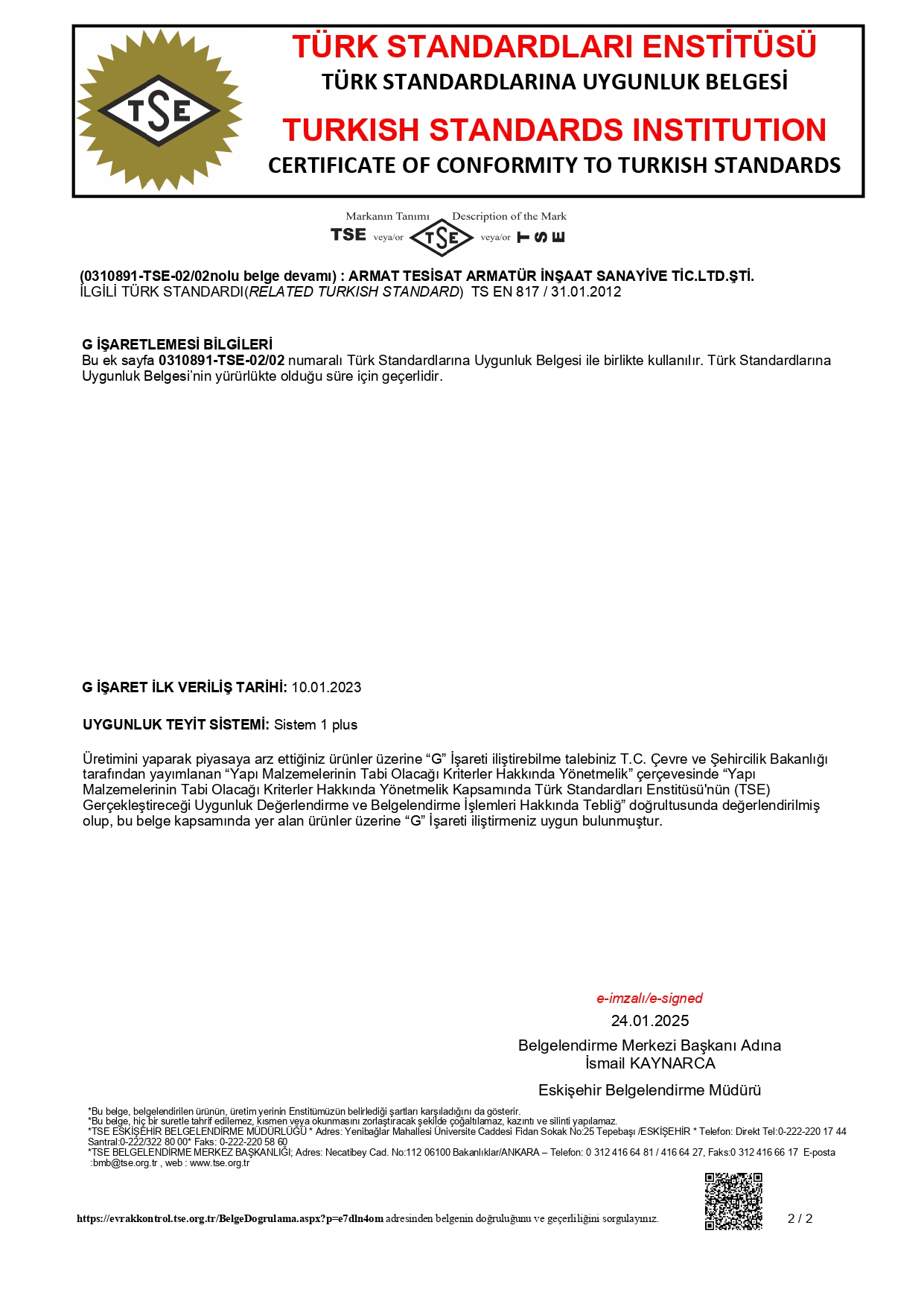 ARMAT ' ta, 2005 yılı Ocak ayı itibariyle kalite sistem çalışmalarına başlanmıştır ve ağustos ayı içinde - TUV NORD CERT - belgelendirme kurulu tarafndan - TS. EN ISO 9001 belgelendirme denetlemesi yapılmış ve denetleme başarıyla tamamlanarak- TS. EN ISO 9001 belgesini almıştır.